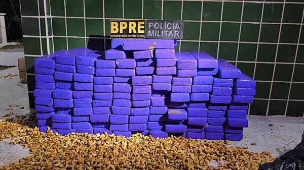 Os policiais interceptaram os dois automóveis, que viajavam em comboio e realizaram a apreensão e 113,5 kg de maconha. Todo o material estava em embalagens com castanhas de caju, em uma tentativa de despistar o policiamento.